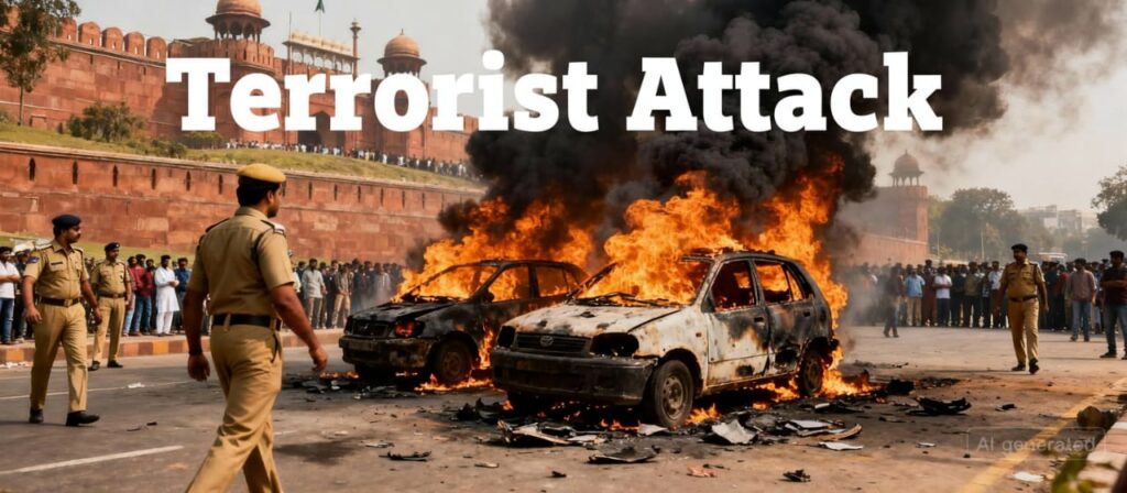NEW DELHI 10 Nov, 2025— A devastating car explosion near Red Fort Metro Station killed at least eight people and injured 24 others on Monday evening